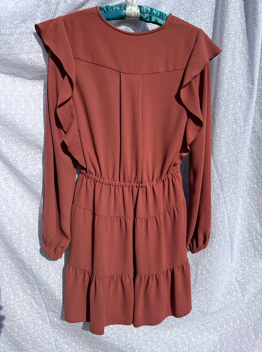 Wilfred Aritzia Red Long Sleeve Ruffle Mini Dress